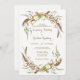 O convite para casamento rústico elegante apresenta cor d'água, algodão, coroa floral e penas faisões.