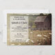 Convide convidados para os vossos futuros núpcias do tema de fazenda rural com o encantador Convite para Casamento Russo de Casamento com Casas de Casamento com Casas Russos. Este casamento personalizado casual apresenta uma fotografia de fazenda tênue de um velho celeiro do meio-oeste de madeira e cerca com árvores verdes altas no fundo e um campo de flores silvestres Lace da rainha branca no primeiro plano.