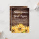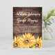 Convite para casamento elegante para o seu casamento de verão! Girassol de aquarela no fundo de um fundo de madeira. Use este cartão de modelo para o seu casamento no tema do país. Personalize este produto adicionando as suas próprias informações de casamento. Belo design floral amarelo.