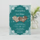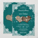 Estes convites românticos de casamento, com corações de burlap, com fundo de burlap e rolo adornados com luzes de cordas são perfeitos para convidar seus hóspedes para sua festa de casamento rústica teal/barn.
