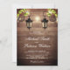 Incêndio aos seus convidados com este convite de casamento rústico com lindas lanternas de jardim num fundo de madeira de celeiro rústico. Basta adicionar os detalhes do seu evento neste modelo fácil de usar para torná-lo um convite de tipo único.