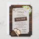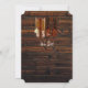 se você está procurando um país rústico e tema ocidental, esses convites são bons para você. Pavimentos de madeira castanha escura e aflita, com texto de rico e margaridas e chapéus de cowboy na frente. As costas têm um conjunto de botas de cowboys, dele e dela, juntamente com as palavras, "Fazemos."