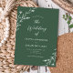 Este adorável convite de casamento rústico apresenta um belo fundo verde profundo com flores silvestres desenhadas à mão e tipografia elegante. É a design perfeita para um casamento rústico, mas elegante! Consulte a coleção para coordenar itens.