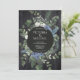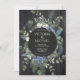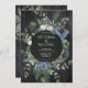 Madeira de celeiro negro elegante e russa, com ramificações de pinheiro de aquarela, bagas de zimbro, eucalipto, espadilha azul e as iniciais dos convites para casamentos de casais. Cores de preto, branco, azul e tons de verde. Excelente para um casamento russo, Woodland, Primavera, Boho, Floresta ou ao ar livre! Muitos itens correspondentes em um!
