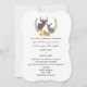 Um convite de casamento com uma ilustração de flores laranja e amarelas e verde arranjado em torno dos pincéis de um pinto e de um pinto. Personalize o texto com detalhes da sua ocasião. A redação é dos pais da noiva.