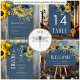 Celebre o calor e a vibração do seu amor com este maravilhoso convite de girassol. As matizes vibrantes amarelas e marrons dos girassóis, complementadas pelas papoilas azuis empoeiradas e pela folhagem verde-luxuosa, criam uma atmosfera cativante e alegre. O fundo azul escuro adiciona um toque de sofisticação, enquanto a fonte branca limpa garante um aspecto moderno e elegante. Este convite é a escolha perfeita para um casamento de verão, capturando a essência da felicidade e da celebração. Deixem seus convidados serem atraídos para o calor e a beleza do seu dia especial com esta design impressionante. Criado pela imprensa simplesmente de farmácia.