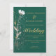 Um pacote romântico de prata prensada, ouro e flores e botânicos brancos selvagens adoram seu convite de casamento rústico. Plascos de esboços verdes e brancos claros adicionam um encanto boêmico no maravilhoso fundo verde esmeralda esmeralda. O guião ouro ombré enho os metais macios no buquê de flor prensada. Sua foto de casal esmagada com os pulsos de ouro faz do seu convite de casamento uma bela manutenção.