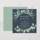 Chic e elegante convite de casamento botânico de eucalipto. Enquadre seus detalhes do dia do casamento com folhas de eucalipto em verde e folhagem azul com fundo azul da meia-noite e na moda branco. Personalize facilmente este modelo de convite com os detalhes do dia do casamento.