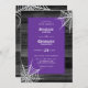 Convite para o casamento de Halloween, design púrpura e madeira rústica. Testemunhas assustadoras em fundo rústico escuro com laranja, um design ideal para um casamento de Halloween, casamento de outubro, casamento de gótico rústico.