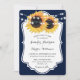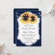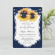 Convite de casamento floral azul marinho inspirado pelas flores de girassol.