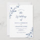 Este adorável convite de casamento rústico apresenta um clássico fundo branco com flores silvestres desenhadas à mão azul marinho e tipografia elegante. É a design perfeita para um casamento rústico, mas elegante! Consulte a coleção para coordenar itens.