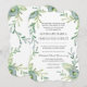 Convites de Casamento Floral de Cor de Água Azul Verde e Serenidade Azul Cinzas com blues macios e folhas verdes com chartreuse amarelado e um toque de limão no centro das flores azuis. Tudo feito em uma textura macia para um design floral romântico neste convite de casamento rústico, mas elegante.