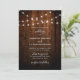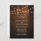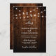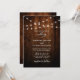 Este convite de casamento rústico apresenta um fundo quente, texturado de madeira com luzes suavemente brilhantes, criando um ambiente acolhedor e romântico. A elegante mistura de escrita manual e fontes sans-serif adiciona um toque de charme e sofisticação, fazer-a perfeita para casamentos celeiro, country ou ao ar livre. O design de madeira escura melhora o contraste do texto branco nítido, garantindo a legibilidade enquanto mantém uma estética rústica-chica. Ideal para casais com orçamento planejando uma queda, fazenda ou celebração inspirada na floresta, este convite deliciosamente dá o tom para um dia de casamento íntimo e na moda.
