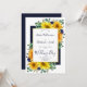 Este belo, moderno e rústico design apresenta buquês exuberantes de girassóis, rosas azuis marinhos e verde incluindo folhas de eucalipto e samambaias. Atrás dos buquês há um retângulo azul marinho escuro, e na frente há uma área branca de borda dourada com o texto personalizável em azul marinho em tendências, roteiro elegante e tipografia sans serif. A parte de trás corresponde ao marinho. Você pode personalizar este item para seu evento especial alterando o texto no modelo do produto.