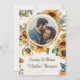 Uma elegante explosão de girassóis contra um pano de fundo de creme cria uma exibição impressionante e atraente para seus detalhes de casamento. Apresentando delicada caligrafia de script e um lugar para personalizar com você fotos para esse toque especial extra. Perfeito para Primavera, Verão e Casamentos outono!