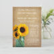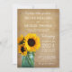 Convide sua família e amigos para o seu casamento com os convites de casamento de pedras de girassol rústico. Design apresenta girassóis amarelos em um pote de mason azul com uma madeira de celeiro escura na parte de trás do convite.