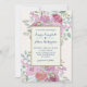 Crie o seu convite perfeito para o casamento com este design rústico e maravilhoso. Trabalho de arte floral original, com rosas de Borgonha e pénicas cor-de-rosa pinceladas entre folhagem bonito e verde. O script elegante completa este design e é facilmente personalizado para seus próprios detalhes.
