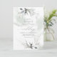 Convites de casamento românticos e elegantes - Espalho de aquarela emparelhado com folhagem verde empoeirada pintada à mão. Sotaques caligraficos manuscritos, a parte de trás é uma cor coordenadora - isso é parte de uma suíte de casamento completa.