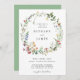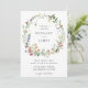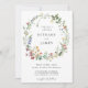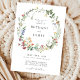 Este convite apresenta uma coroa de flores silvestres multicoloridas rústicas. Perfeito para primavera e verão ao ar livre e casamentos inspirados em boho.