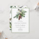 Celebre seu amor pela beleza serena do inverno. Nosso convite de casamento inspirado na natureza apresenta uma delicada imagem aquática de pinheiro rústico, pineges, conchas com amoras brancas, e palitos azuis empoeirados, com um belo pássaro empoleirado nele — capturando a magia silenciosa da estação. Terminado com uma fonte limpa e moderna e uma imagem verde macia, esta design traz elegância e calor ao seu dia especial. Perfeito para um casamento no inverno cheio de maravilha natural. Criado pela imprensa simplesmente de farmácia.