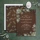 Crie o convite perfeito para o casamento com esta design de terra maravilhosa russa do inverno. Apresentando flocos de neve com brilho prateado caindo em um pinho de água/abeto verde, com tipografia manuscrita e luzes de cordas cintilantes, o verso da placa apresenta um motivo correspondente sobre a madeira. Copyright Elegant Invites, todos os direitos reservados.
