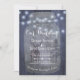 Modelo de convite à na moda elegante para casamento no inverno, na noite da meia-noite marinho, madeira azul de celeiro, apresentando um grande pote de mason transparente com uma rena, pinheiros e cordas de luzes brancas de brilho. Preencha suas informações nos pontos, Você pode optar por personalizá-las mudando ainda mais as fontes e as cores das letras. +++++++++O convite é adequado para a noite de inverno elegante | montanhas | país rústico ou terra maravilhosa de inverno casamentos temidos.