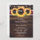 Este convite floral de bronca com flores girassóis contra uma pá e madeira é perfeito para convidar seus hóspedes para sua festa de casamento rústica de burgôs inspirada pelas flores de girassol. Fácil de personalizar a modelo.