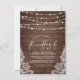 Convites Casamento Rustic Wood String Lights & Lace Script