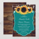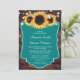 Estes convites de casamento rústicos são ideais para um país rústico teal, ou festa de casamento de celeiro inspirada pelas flores de girassol. Design totalmente personalizável. Personalize facilmente este cartão de casamento de girassol com seus detalhes de casamento.