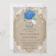 Convites Casamento Rústico Azul Hydrangea Burlap Lace