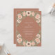 Este design apresenta um fundo quente em tom de argila acentuado por uma delicada exposição floral. Rosas cremosas e anemones impressionantes com centros escuros são combinados com samambaias macias e folhagem de eucalipto. A paleta rica em argila estabelece um clima quente e sofisticado ideal para um evento sazonal de outono.