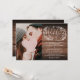 Um convite de casamento rústico com uma delicada grinalda floral rústica desenhada à mão de folhagem de folhas botânicas com tipografia de letra estilosa, sobre um fundo de madeira rústica. Personalize com todas as informações do seu dia especial de casamento no verso, incluindo seu RSVP, acomodação e detalhes adicionais. Criado por Thisisnotme©