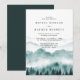 Convite de casamento elegante e rústico apresenta montanha em aquarela com árvores e tipografia clássica.