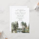 Este convite de casamento rústico em aquarela com floresta e lago pode ser personalizado com suas informações em tipografia moderna. Desenhado por Thisisnotme