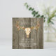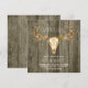 Convite de casamento rústico do sudoeste com crânio de veado adornado com videira floral em um fundo de madeira de celeiro rústico. Este convite de casamento com crânio de veado ornamentado e rústico é facilmente personalizado para o seu evento, basta adicionar seus detalhes no estilo de letra, cor e redação de sua escolha.