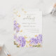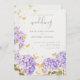 Um modelo de casamento moderno, na moda, romântico e rústico, com tema de borboletas, com aquarelas, flores de hidrangea roxas pintadas à mão, borboletas de aquarela em ouro e borboletas de ouro (é um efeito digital, não uma folha real). Romântica e elegante, na moda e chic, vai apelar à noiva e ao noivo modernos que querem uma atmosfera refinada mas relaxada, talvez no campo, num jardim ou outro lugar onde a natureza tem um papel importante.
