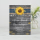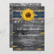 Procurando ideias de casamento de girassol rústico para o seu Dia Grande? Crie seus próprios convites personalizados para o casamento de girassol em um elegante modelo DIY que é simples de personalizar. A design única criada com a arte original de aquarela de Raphaela Wilson apresenta girassóis ouros brilhantes com folhas verdes, uma fita de renda azul escura com padrão floral, corda de fita de burlap e pétalas de flor mole sobre uma madeira de cinza antiga. Luzes brilhantes de cordas, como frequentemente vistas em decoração de mesas de fazendas / frascos-pedras, adicionam um brilho romântico suave. As opções criativas nesses convites de casamento rústicos incluem a habilidade de alterar a escrita de caligrafia moderna e a tipografia tradicional para fontes que melhor se adequam ao seu próprio estilo. Se por acaso você comemora outro evento, esses cartões de modelo não só funcionam bem para casamentos de girassol, mas também para um chá de panela de verão, quinceanera da cowgirl / doce 16 festas de aniversário, caem chá de fraldas e muito mais. Você pode ainda incluir mais detalhes e texto no verso, bem como carregar sua própria foto/foto de noivado. Aproveite! Categoria: rústico guardar os convites para data; artigos de papelaria de girassol/cartões rsvp. Cores do tema do casamento de girassol: ouro amarelo, marinho azul escuro, cinza clara, cinza escura, castanho, bronzeado, preto e marfim branco.