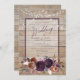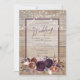 Este convite de casamento mostra sua linda ameixa, roxo e cores de casamento douradas. O fundo da madeira e as luzes das cordas são casuais e românticas. A fonte do script é tão elegante. Este é o convite perfeito para o seu dia especial!