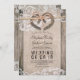 Modelo de convite para casamento no estilo russo do país - Velhas Ferraduras Casais com Nó de Arco de Corda e Lace Branco, Vestuário de Burlap no Fundo da Madeira do Velho Celeiro. Um Design perfeito para o seu grande dia. Todo estilo de texto, cores, tamanhos podem ser modificados para ajustado das suas necessidades!