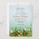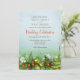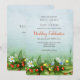 Este cartão de casamento de morango silvestre apresenta minúsculas algas amarelas, minúsculas nádegas azuis, uma margarida de solteiro e um monte de morangos vermelhos pequenos, maduros, espiando-se entre as folhas vermelhas das plantas de morango silvestre - seus detalhes de casamento estão na porção azul ligeiramente turva do céu verde para o fundo azul azul-celana azul do céu - por katz_d_zynes | Parte da coleção de morangos e flores selvagens de katzdzynes > https://www.zazzle.com/collections/119185498872390969