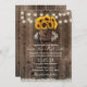Convites de Casamento de Celeiro Country com Luzes de Corda em Barril de Vinho e Girassol Rústico.