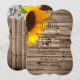 conjunto de convite de casamento de girassol country ocidental de madeira de celeiro de renda rústica.