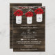 Lenha rustica, luzes de cordas balançando com poinsettias em convites para casamentos no inverno de jarro de pedras. Produtos correspondentes também disponíveis.