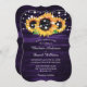 Convites de casamento roxos e girassóis russos ideais para uma festa de casamento rústica romântica de burgueira inspirada pelas flores de girassol. Itens correspondentes disponíveis.