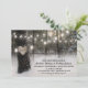 Convites de casamento de inverno com lindas florestas cobertas de neve, um coração talhado em uma árvore com suas iniciais, luzes cintilantes e um modelo de casamento moderno.