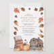Celebre o seu amor com este convite de casamento rústico de outono encantador. Com destaque para abóboras em aquarela, um celeiro aconchegante e folhas de outono coloridas, este design define o tom perfeito para o seu dia especial. Personalize-o com os seus detalhes para criar um souvenir único e convidativo para os seus convidados.