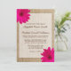 Um convite temático do casamento do país que caracteriza a serapilheira e margaridas cor-de-rosa do gerbera. Aperfeiçoe para um casamento do celeiro ou o casamento exterior. Personalize facilmente para seu evento. O design é gráficos impressos plano -- SERAPILHEIRA NAO REAL