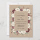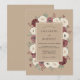 Um fundo quente bege prepara o palco para uma rica exibição de flores profundas marrom e creme. Anêmonas brancas pintadas à mão com centros escuros e rosas bordô são destaque em um arranjo exuberante com folhagem verde empoeirada. Este design oferece uma estética sofisticada e sombria, capturando a essência de um evento rústico refinado através de sua arte botânica.