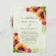 Design apresenta um elemento floral impresso em tons de amarelo, rosa e verde sobre folhas verdes e girassóis, sobre um fundo verde claro de aquarela. Excelente para as comemorações do casamento!