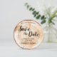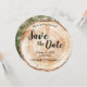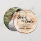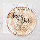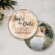 Convite de Data de Salvação de Casamento Rústico com Foto em Grão de Madeira - uma mistura de charme natural e elegância romântica, perfeitamente adaptada ao seu tema de casamento rústico. Este cartão redondo único captura a essência do grão de madeira, imitando as fatias de disco rústicas frequentemente vistas em casamentos lindos e românticos. *Textura de madeira impressa em papel